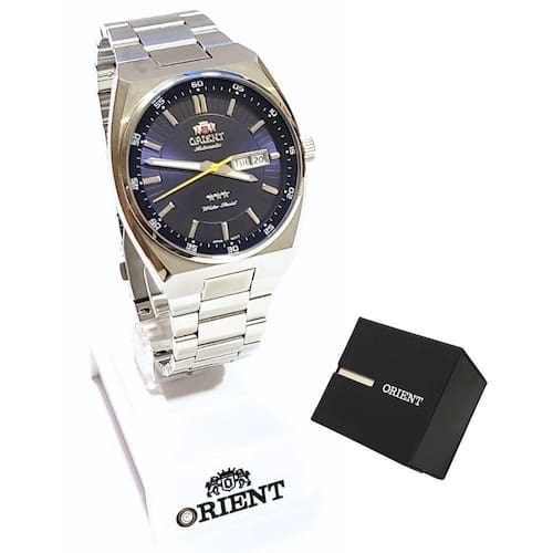 Marca: Orient Modelo: 469SS087F D1SX Tipo de relógio: Analógico Gênero: Masculino Cor da caixa: Prateado Cor da pulseira: Prateado Estilo: Casual Alarme: Não Cronômetro: Não Calendário: Sim Luz: Não – ponteiros fluorescentes Resistência à água: Sim – 3 ATM = 30 metros Tipo de fecho: Dobrável com trava lateral Material da Caixa: Aço Inoxidável Material da Pulseira: Aço Inoxidável Características do vidro: Cristal Mineral Tamanho da caixa: 42 mm Espessura da caixa: 11 mm Peso: 149 g Comprimento da pulseira: 25 cm Largura da pulseira: 22 mm Tampa do fundo: Rosqueado Alimentação: Automático Garantia do Fabricante: 12 meses Fabricante: Orient Relógios da Amazônia LTDA