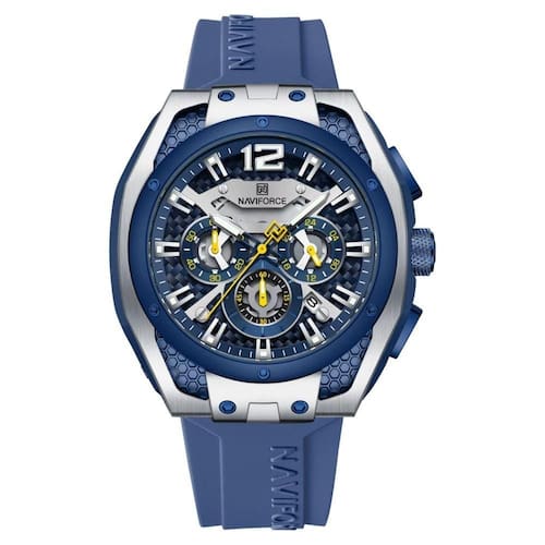 Fabricado com materiais de alta qualidade, Que impressiona não apenas pela aparência imponente, mas também pela sua durabilidade inigualável. Este relógio esportivo é equipado com um cronógrafo preciso e resistência à água de até 3 bar, garantindo que você esteja preparado para qualquer desafio.