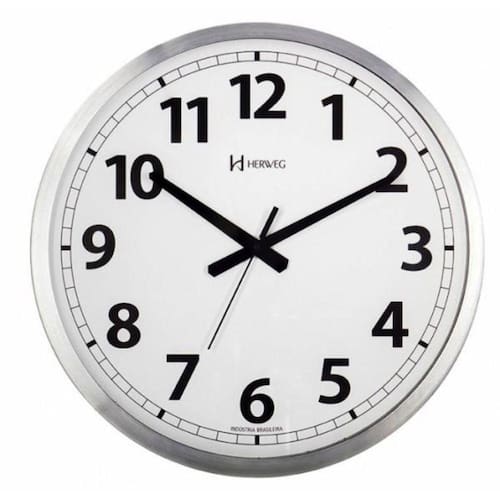 Referência: 6711-079Marca: herwegEstilo: clássicoMedidas: 30,5d x 4e cmRelógio de parede Base alumínio escovado Mecanismo step Usa 1 pilha aa Produto nacional Cor: prata alumínio