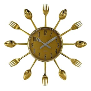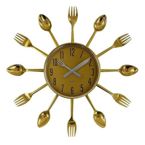 Relogio Parede Decorativo Cozinha Estilo Retro Com Talheres Design Elegante Moderno Dourado Luxo