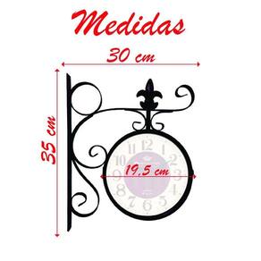 Características Gerais do Produto: - Material: Metal - Modelo: Relógio Dupla Face - Cor: Preto - Dimensões aproximadas: Altura 35cm x Largura 30cm x Diâmetro 19,5cm - Potência: 1,5v Garantia: - Garantia contra no