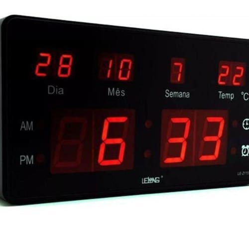 Com este lindo relógio você pode colocar em sua academia, comércio, casa, consultório e etc ... Marca Hora, data, semana, temperatura e tem alarme. AM/PM.