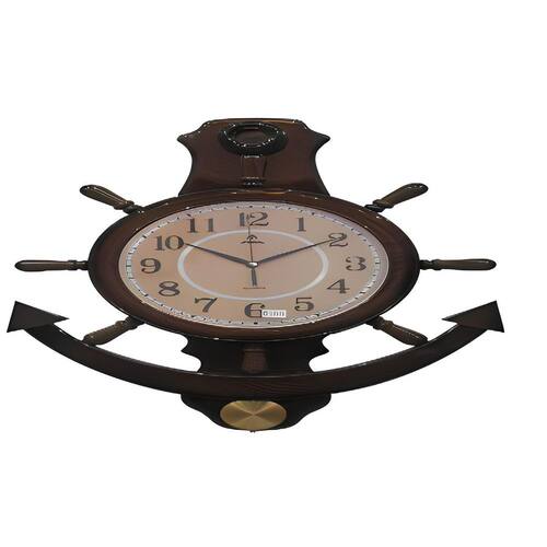 Este relógio de parede se destaca pelo seu design náutico e imponente. Com 52 cm de largura e 69 cm de altura, ele é ideal para decorar ambientes com temática marítima ou para adicionar um toque de personalidade a qualquer espaço. Seu mostrador em formato de âncora é complementado por números arábicos grandes e bem visíveis, facilitando a leitura do horário à distância. A estrutura robusta e os detalhes cuidadosos garantem que este relógio não seja apenas funcional, mas também uma peça de destaque em sua decoração. A combinação de elementos clássicos e estilo náutico faz deste relógio uma escolha única e encantadora.