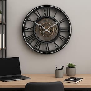 Principais Características: Design Clássico: O relógio apresenta um design intemporal com marcadores numéricos romanos, adicionando um toque vintage ao seu espaço. Montagem na Parede Deslumbrante: Com seu tamanho impressionante e moldura elegante, este relógio pode servir como peça central em sua parede ou ser incorporado a uma maior disposição decorativa, como uma parede de galeria de fotos.
