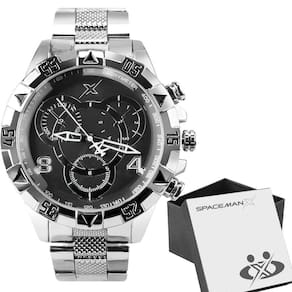 Surpreenda a pessoa amada com o Relógio Masculino Orizom Spaceman X Com design analógico e formato redondo, o relógio possui um diâmetro de caixa de aproximadamente 4,5 cm e é feito de aço inoxidável na cor prata, com mostrador preto. A tampa é blindada e apresenta a arte exclusiva do modelo Spaceman X, juntamente com todos os detalhes de autenticidade da marca Orizom, incluindo número de série.