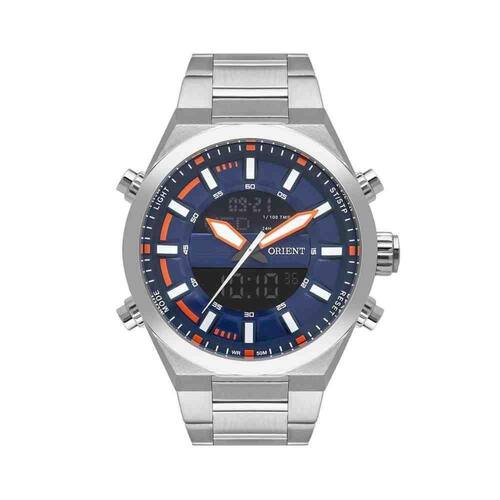 Relógio Prata Masculino AnaDigi Orient Neo Sports MBSSA051 DOSXDos clássicos aos modernos, os relógios têm muito a dizer sobre a sua personalidade. Nossos modelos casuais possuem um design inovador e complementam seu estilo.Todos os produtos são e acompanham: Embalagem ;Manual em português; do fornecedor; simplificada, que vai colada junto à etiqueta.ESPECIFICAÇÕES TÉCNICAS-Marca: Orient-Gênero: Masculino -Tipo de mostrador: ógico e Digital-Função: Calendário, timer, cronômetro e alarme diário-Tipo de fecho: Trava com botões laterais -Cor da caixa: Prata-Cor do mostrador: Azul com detalhes em laranja e branco e lcd negativo-Cor da pulseira: Prata-Material da caixa: Aço inox-Material da pulseira: Aço inox-Largura da caixa: 4,5 cm-Espessura da caixa: 1,5 cm-Comprimento da pulseira: 25 cm-Largura da pulseira: 2,6 cm-Resistência à água: 5 ATM 50m -: 12 meses Marca: Não Informado