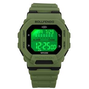 MARCA: Bollfendo Categoria: Digital Digital: Sim 1 Horário Calendário: Sim Despertador: Sim Cronômetro: Sim Luz: Sim Cor da Iluminação: Verde