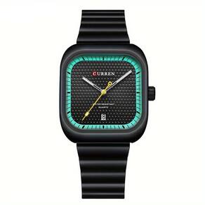 Relógio Quadrado Data Característica Pulseira De Aço Inoxidável à Prova D`água Verde