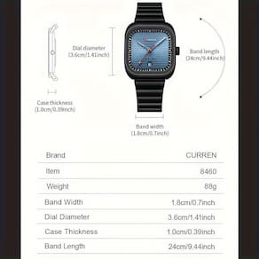 Este elegante relógio quadrado possui data e características exclusivas, combinando estilo e funcionalidade. Sua pulseira de aço inoxidável é durável e resistente à água, garantindo qualidade e sofisticação. Seja sempre pontual com este relógio de luxo.
