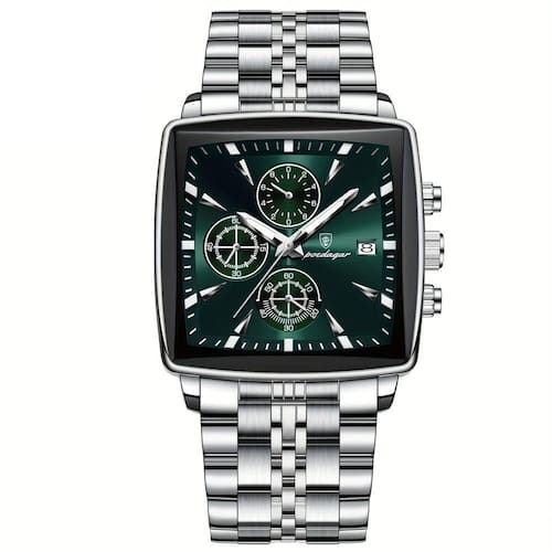 Especificações: [Faixa etária aplicável] Este relógio é ideal para homens que desejam um toque de elegância em seu dia a dia. [Material da correia] Feito de aço inoxidável, garantindo durabilidade e um brilho que se mantém impecável ao longo do tempo. [Material do estojo de relógios] Possui caixa feita de liga, proporcionando resistência sem abrir mão do design sofisticado. [Estilo e Movimento] Com um design elegante e o confiável movimento de quartzo, este relógio combina estilo com precisão. [Fonte de energia] Este relógio é alimentado por uma bateria tipo botão, assegurando funcionamento contínuo e de baixa manutenção.