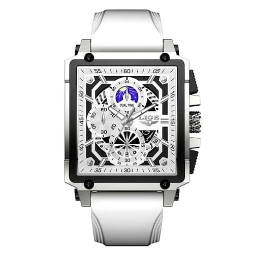 Redefine o conceito de elegância desportiva com seu design contemporâneo e funcionalidade superior. Com um mostrador quadrado robusto e uma pulseira em silicone confortável, este relógio combina sofisticação com a durabilidade necessária para o dia a dia. Sua resistência à água de 3ATM permite que você enfrente chuvas e atividades aquáticas sem preocupações. Este relógio não é apenas um acessório, é uma declaração de estilo e eficiência, ideal para aqueles que levam a vida de forma dinâmica.