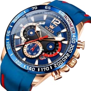 Relógio Quartzo Impermeável Masculino Esportivo Casual Pulseira De Borracha Azul Dourado