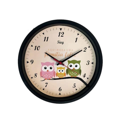 Relógio em Aro plástico com design e mensagem ideal para decorar e harmonizar o seu ambiente. Excelente qualidade; Ótima opção para decorar a parede de sua casa. Ótima opção também para presentear uma pessoa especial. Especificações: Cor: Preto Tema: Família Coruja Marca: Sieg Material: Plástico Diâmetro: 28 cm Alimentação: AA Ean: 7898594820462