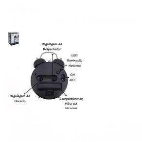 Relógio Retro Analógico Com Alarme DescriçãoRelógio de mesa perfeito para usar como despertador, principalmente para quem tem o sono pesado.Fácil programação tanto do relógio quanto do despertador.Utiliza 1 pilha AA para funcionar.Possui Luz noturna;Medidas: 13x8x5 cm Ean: 6012517475459