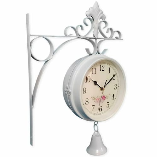 Relógio Retrô Com Sino Estação Trem Dupla Face Floral Branco -