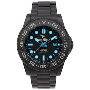 Máquina movimento Quartzo Japonesa Mecanismo Analógico com 3 ponteiros Caixa do relógio em titânio cirúrgico Pulseira em Titânio com tamanho 20-22cm Fecho com trava de e botões laterais de pressão para abertura Aro unidirecional em titânio Vidro de cristal mineral plano Tampa posterior rosqueada. Testado 200m à prova dágua. Tamanho: 44mm de diâmetro Garantia: 12 meses pela fabricante Rip Curl .