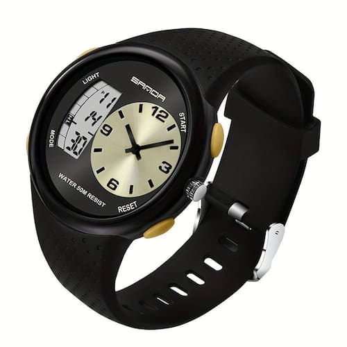 Relógio Sanda Eletrónico Digital De Dupla Exibição 50 M Design Preto Dourado