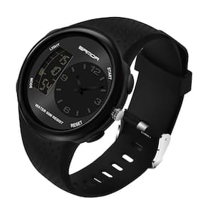 O relógio é meticulosamente projetado para suportar as mais diversas condições climáticas, graças à sua resistência à água de até 50 metros. A pulseira de borracha oferece conforto e durabilidade excepcional, enquanto o estojo de resina sintética assegura uma construção leve e resistente. Ideal para esportistas e aventureiros, este relógio redefine o que significa estar sempre no controle do tempo.