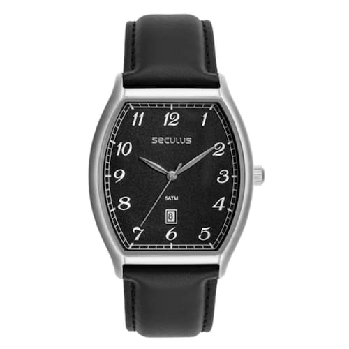 Relógio seculus 23746g0svnc1 O relógio seculus 23746g0svnc1 combina sofisticação e estilo clássico em um acessório versátil para o dia a dia. Sua caixa em aço inoxidável no formato retangular traz um design elegante e moderno, enquanto o mostrador preto com algarismos brancos garante excelente legibilidade. Equipado com calendário na posição das 6 horas e resistência à água de até 5 atm, é ideal para acompanhar a rotina com praticidade e bom gosto. A pulseira em couro preto completa o visual refinado e confortável deste modelo atemporal. Especificações técnicas Mecanismo: analógico movimento miyota Gênero: masculino Visor: preto Vidro: cristal mineral Funções: calendário Prova d'água: 50m Características: com caixa em aço inoxidável e pulseira em couro preto Diâmetro da caixa: 38 mm : 2 anos pelo fabricante seculus Marca: Não Informado