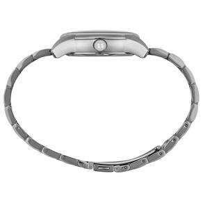 A caixa em aço inoxidável na cor prata possui 41 mm e apresenta construção robusta e bem equilibrada. A pulseira sólida em aço, com elos clássicos, complementa o visual técnico e estruturado, garantindo conforto e segurança no uso diário.