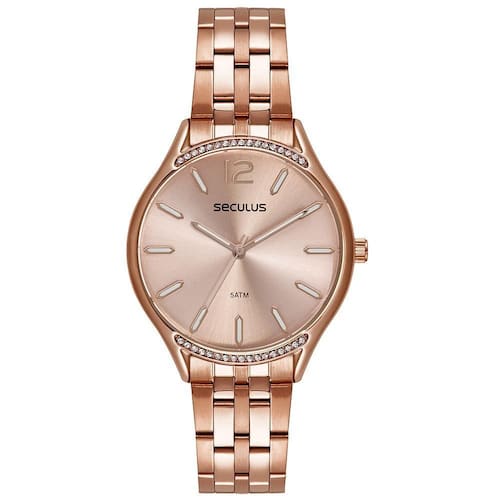 O Relógio Seculus 77250LPSVRS3 é a escolha certa para mulheres que valorizam estilo e sofisticação em cada detalhe. Sua caixa de 40 mm em aço inoxidável rosé oferece um design elegante e contemporâneo, com delicados cristais aplicados no aro superior e inferior, garantindo um brilho extra ao acessório.