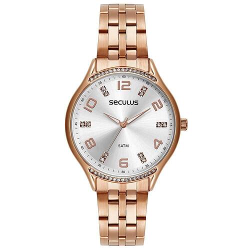 O Relógio Seculus 77268LPSVRS2 é a escolha perfeita para mulheres que buscam sofisticação e estilo no dia a dia. Sua caixa em aço inoxidável rosé transmite modernidade e elegância, enquanto o mostrador prateado é detalhado com números arábicos em rosé e marcadores de hora com aplicação de cristais, trazendo brilho e charme à peça.