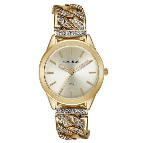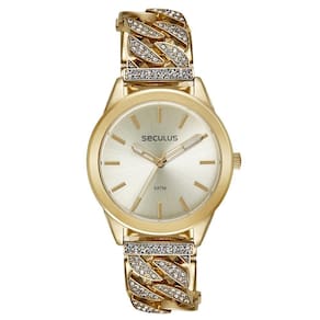 O Relógio Seculus 77273LPSVDB1 é uma peça de elegância e sofisticação, ideal para mulheres que desejam um acessório versátil e refinado. Sua caixa em aço dourado se harmoniza perfeitamente com a pulseira trabalhada em elos largos, que recebe aplicação de cristais, garantindo um brilho especial que valoriza ainda mais o visual.