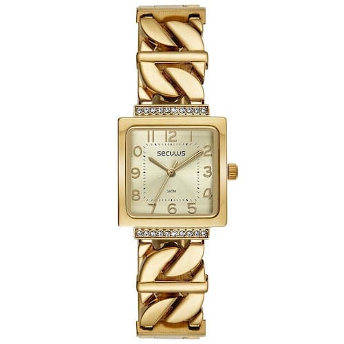 O Relógio Seculus 77297LPSVDB1 é a combinação perfeita entre sofisticação e estilo. Sua caixa quadrada em aço dourado de 26 x 26 mm garante um visual moderno e marcante, enquanto o mostrador dourado em acabamento sunray transmite elegância e refinamento.