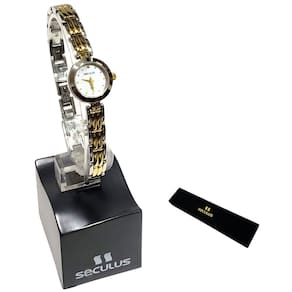 Marca: Seculus Modelo: 23690LPSVBA3 Tipo de relógio: Analógico Gênero: Feminino Cor da caixa: Prateado Cor da pulseira: Prateado e Dourado Estilo: Casual Alarme: Não Cronômetro: Não Calendário: Não Luz: Não Resistência à água: Sim – 5 ATM = 50 metros Tipo de fecho: Fecho tipo joia Material da caixa: Aço Material da pulseira: Aço Características do vidro: Cristal Mineral Tamanho da caixa: 17 mm Espessura da caixa: 8 mm Comprimento da pulseira: 19 cm Largura da pulseira: 8 mm Tampa do fundo: Pressão Peso: 28 Gramas Alimentação: Bateria Garantia do Fabricante: 12 meses Fabricante: Seculus da Amazônia Indústria e Com. S/A