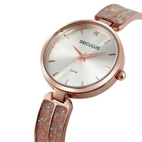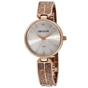 Relógio Feminino Clássico com Pedras Rose Gold: Elegância e Brilho para seu Pulso Adicione um toque de sofisticação e brilho ao seu visual com o Relógio Feminino Clássico com Pedras Rose Gold 77136LPSVRB2. Este modelo analógico é a escolha perfeita para quem busca elegância atemporal e um design que valoriza seu estilo. Seu mostrador apresenta um elegante visor prata, que contrasta harmoniosamente com a caixa em rose gold, uma cor que está em alta e confere modernidade ao relógio. A pulseira sólida em metal especial, adornada com pedras cintilantes em ambos os lados, e o fecho joalheria garantem não apenas um ajuste seguro, mas também um caimento luxuoso e confortável. Com uma caixa de 3,6 cm de tamanho, este relógio clássico é ideal para complementar seus looks diários ou para brilhar em ocasiões especiais, adicionando um toque de glamour discreto e sofisticado. Por que você vai amar este Relógio Rose Gold? Design Clássico e Elegante: Perfeito para realçar seu estilo com um toque de sofisticação. Detalhes Luxuosos: Pedras na pulseira e caixa rose gold, garantindo um brilho sutil e moderno. Qualidade e Conforto: Pulseira sólida em metal especial e fecho joalheria para maior segurança e caimento. Versatilidade: Ideal para o dia a dia e para momentos que pedem um acessório mais requintado. Garantia de 2 Anos: Sua tranquilidade assegurada com a qualidade do produto. Especificações Técnicas: Tamanho do Vidro: 32 mm Tamanho da Caixa: 36 mm Comprimento do Relógio: 21 cm Altura: 9 mm Largura da Pulseira: 14 mm Número de Elos Removíveis: 2 ATM - Pressão Máxima: 5 ATM (Resistente a respingos e banho, não indicado para mergulho) Alarme: Não Garantia: 2 Anos Conteúdo da Embalagem: Relógio, Manual e Certificado de Garantia Referência: 77136LPSVRB2 Adquira já o seu Relógio Feminino Rose Gold com Pedras e traga mais brilho e elegância para o seu tempo!