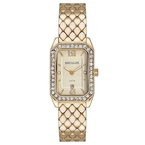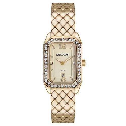 Relógio seculus feminino ref: 23711lpsvdb1 retangular dourado Descrição do produto: