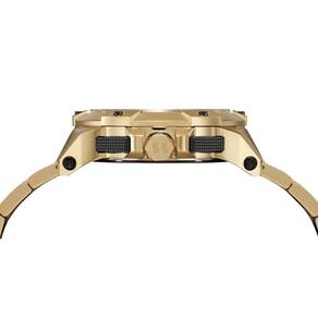 A pulseira em aço dourado com acabamento polido completa o visual imponente, oferecendo conforto e resistência. Um relógio sofisticado e funcional, perfeito tanto para ocasiões formais quanto para o uso cotidiano.