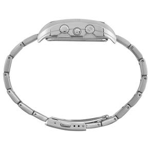 A pulseira em aço inoxidável prateado completa o design robusto, garantindo resistência e conforto. Com resistência de 5 ATM, este relógio é perfeito para acompanhar a rotina com estilo e eficiência.