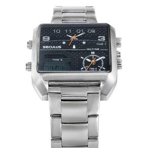 O Relógio Seculus 77161G0SVNA1 é moderno e multifuncional, ideal para homens que valorizam estilo e praticidade. Sua caixa retangular em aço prateado de 40x46 mm confere um visual arrojado, enquanto o mostrador preto texturizado agrega personalidade ao design.