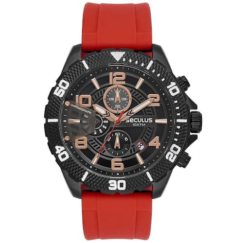 O Relógio Seculus 77301GPSVSU2 é a escolha ideal para quem busca robustez, estilo esportivo e alto desempenho em um só acessório. Sua caixa preta com aro texturizado e mostrador multifuncional preto com detalhes em rosé transmite imponência, enquanto a pulseira de silicone vermelha proporciona conforto e personalidade ao visual.