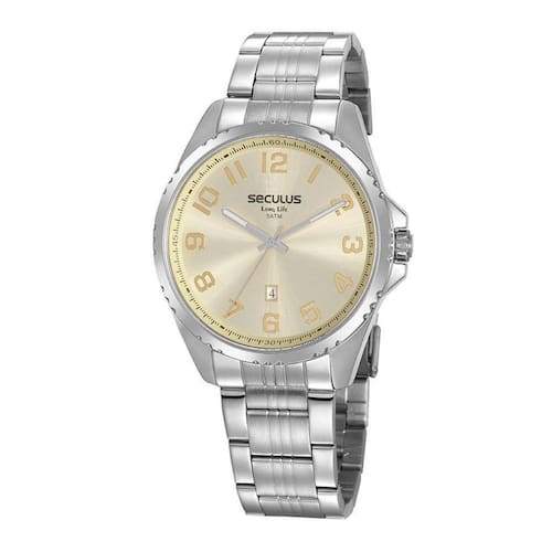 Relógio Seculus Masculino Analogico Com Calendario 20855G0Svna4 O funcionamento é Analogico com calendario, Pulseira de Aço na cor PRATA, fecho de Trava de Segurança, caixa de Aço e resistencia de 5 ATM. Especificações Marca: Seculus Modelo: 20855G0SVNA4 Gênero: Masculino Mecanismo: Analogico com calendario Material da caixa: Aço Material da pulseira: Aço Material do vidro: Cristal Mineral Cor da caixa: Cromado Cor do mostrador: CHAMPAGNE Tamanho da caixa: 45MM Formato da caixa: Redondo Resistência à água: 5 ATM : 2 anos Tipo de fecho:Trava de Segurança Sobre a Marca: Para aqueles que valorizam design, qualidade e custo-benefício, a nossa marca é muito mais do que um acessório. É uma mostra de precisão em todos os detalhes. Design contemporâneo, versatilidade e qualidade nos produtos. São relógios para diferentes ocasiões, com 2 anos de . Somos uma sólida marca de relógios que está no mercado há mais de 50 anos, e nosso maior trunfo é a atemporalidade. Sempre em busca de inovações, trazemos a modernidade em nossos modelos e ressaltamos a personalidade confiante, forte e segura de quem os usa. Produzimos relógios femininos e masculinos, alinhados ao estilo de vida dos nossos clientes, resultando em peças autênticas e versáteis. Marca: Seculus Relógios Ean: 7909669006541