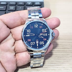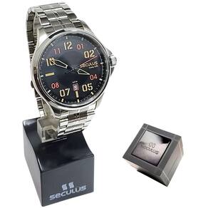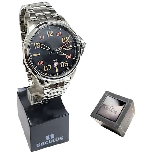 Marca: Seculus Modelo: 77201G0SVNA1 Tipo de relógio: Analógico Gênero: Masculino Cor da caixa: Prateado Cor da pulseira: Prateado Estilo: Casual Alarme: Não Cronômetro: Não Calendário: Sim Luz: Não Resistência à água: Sim – 5 ATM = 50 metros Tipo de fecho: Dobrável, com trava lateral Material da caixa: Aço Inoxidável Material da pulseira: Aço Inoxidável Características do vidro: Vidro mineral Tamanho da caixa: 46 mm Espessura da caixa: 11 mm Comprimento da pulseira: 24 cm Largura da pulseira: 19 mm Tampa do fundo: Rosqueado Peso: 119 Gramas Alimentação: Bateria Garantia do Fabricante: 12 meses Fabricante: Seculus da Amazônia Indústria e Com S/A