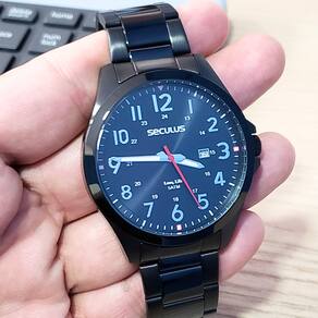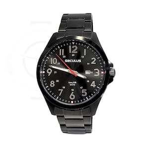 Marca: Seculus Modelo: 44232GPSVPA3 Tipo de relógio: Analógico Gênero: Masculino Cor da caixa: Preto Cor da pulseira: Preto Estilo: Casual Alarme: Não Cronômetro: Não Calendário: Sim Luz: Não – ponteiros fluorescentes Resistência à água: Sim – 5 ATM = 50 metros Tipo de fecho: Dobrável, com trava de segurança Material da caixa: Aço Material da pulseira: Aço Características do vidro: Vidro mineral Tamanho da caixa: 46 mm Espessura da caixa: 11 mm Comprimento da pulseira: 25 cm Largura da pulseira: 20 mm Tampa do fundo: Rosqueado Peso: 86 Gramas Alimentação: Bateria Garantia do Fabricante: 24 meses Fabricante: Seculus da Amazônia Indústria e Com S/A