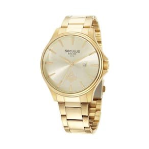 DESCRIÇÃO Relógio SeculusModelo 44115gpsvda1Masculino AnalógicoTamanho Grande Funções Analógico Calendário dia do mês Características Quartz Bateria Coroa: Simples Tampa posterior Rosqueada Resistência à água 50m Vidro Cristal Mineral Mostrador : Dourado com símbolo maçonaria Material da caixa Aço Dourado Material da pulseira Aço Dourado Medidas Diâmetro da caixa 4,5 cm Diâmetro do mostrador 4,1 cm Espessura da caixa 1 cm Largura da pulseira 2,2 cm Peso 120 grs