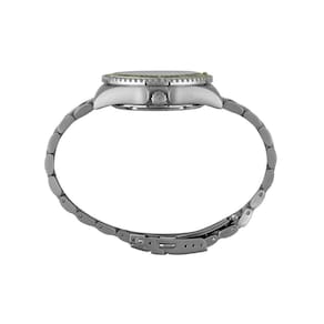 Vidro: cristal mineral Funções: automático, analógico, calendário duplo mensal e semanal em inglês e espanhol Resistencia à água: 100 m Características: com caixa de aço inoxidável e pulseira de aço inoxidável Diâmetro da caixa: 4,2 cm Fundo rosqueado Com fundo de vidro que permite a visualização do maquinário em funcionamento Linha: seculus automatic Alimentação do maquinário: mecânico automático, corda . Mostrador verde Aro fixo verde