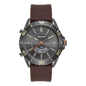 Relógio seculus masculino ref: 44270gpsvsu4 anadigi grafite Descrição do produto: Vidro: cristal mineral Funções: cronógrafo, calendário, anadigi, alarme Resistencia à água: 150 m Características: com caixa de aço inoxidável e pulseira de silicone marrom Diâmetro da caixa: 4,8 cm Fundo de rosca Alimentação do maquinário: bateria Mostrador grafite Aro giratório preto de 2 anos