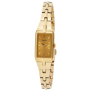 SEIKO Relógios femininos de aço inoxidável inspirados em joias com pulseira de 3 dobras e cristal Hardlex resistente a arranhões, resistente à água de 30 m, Champanhe, Moderno