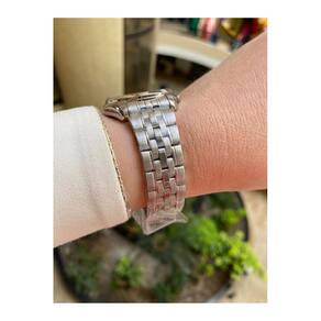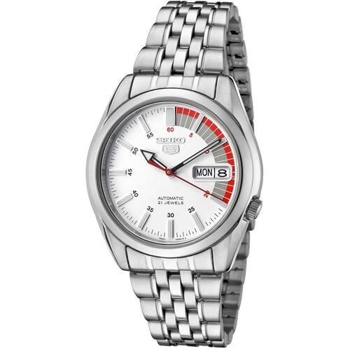 Características: Caixa de aço inoxidável Pulseira de aço inoxidável Movimento automático Calibre: 7S26 21 joias Cristal Hardlex Mostrador branco Display analógico Ponteiros e índices luminosos Exibição de dia e data Veja através da capa traseira Puxar/empurrar coroa Fecho dobrável Resistência à água 30M Diâmetro aproximado da caixa: 37 mm Espessura aproximada da caixa: 11 mm - Com uma pulseira prateada, caixa prateada, cristal Hardlex resistente a arranhões - Mostrador branco e pulseira cinza - Movimento automático - Analógico masculino de aço inoxidável