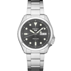 Mostre seu estilo. Faça sua jogada. Por mais de 50 anos, a Seiko 5 Sports oferece níveis consistentemente altos de confiabilidade, durabilidade e desempenho. Para uma cronometragem confiável em sua vida cotidiana, o excepcional relógio esportivo masculino SRPE51 é alimentado por um movimento automático com uma reserva de marcha de aproximadamente 41 horas e possui um calendário de dia/data, ponteiros e marcadores LumiBrite e um fundo de caixa transparente. Com uma caixa e pulseira duráveis de aço inoxidável e um mostrador cinza com raios de sol, este relógio versátil é resistente à água de 100 metros, perfeito para seu estilo, não importa o que seu dia lhe reserva.