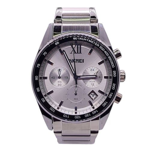 ESPECIFICAÇÕES: Relógio Skmei 9296 Analógico Cronógrafo Resistente a Água Mini ponterios funcionais: Sim Funcionamento: BateriaTamanho caixa: 46mm Mostrador: Analógico Pulseira: Aço Cor: Prata Resistente a Água: 30m Nossa loja física está a mais de 35 anos no mercado oferecendo aos seus clientes o que há de melhor em vendas e serviços de conserto, de relógios e jóias em ouro e Prata.Relojoaria Yoshikawa dedicando todo tempo a você.Nossos produtos são todos tratados com o máximo cuidado, carinho, amor e profissionalismo. Enviamos seu produto em uma embalagem reforçada.