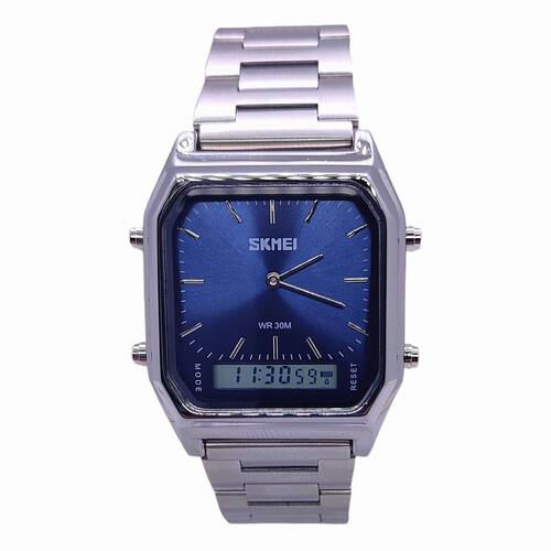 ESPECIFICAÇÕES: Relógio Skmei 1220 Analógico e Digital Retangular Resistente a Água Funcionamento: BateriaTamanho caixa: 43mm x 38mm Mostrador: Analógico e Digital Pulseira: Aço Cor: Prata Resistente a Água: 30m Nossa loja física está a mais de 35 anos no mercado oferecendo aos seus clientes o que há de melhor em vendas e serviços de conserto, de relógios e jóias em ouro e Prata.Relojoaria Yoshikawa dedicando todo tempo a você.Nossos produtos são todos tratados com o máximo cuidado, carinho, amor e profissionalismo. Enviamos seu produto em uma embalagem reforçada.