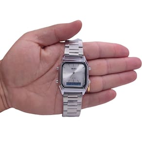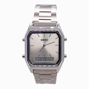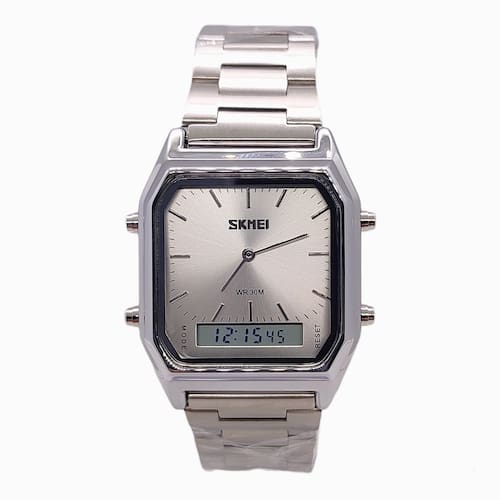 ESPECIFICAÇÕES: Relógio Skmei 1220 Analógico e Digital Retangular Resistente a Água Funcionamento: BateriaTamanho caixa: 43mm x 38mm Mostrador: Analógico e Digital Pulseira: Aço Cor: Prata Resistente a Água: 30m Nossa loja física está a mais de 35 anos no mercado oferecendo aos seus clientes o que há de melhor em vendas e serviços de conserto, de relógios e jóias em ouro e Prata.Relojoaria Yoshikawa dedicando todo tempo a você.Nossos produtos são todos tratados com o máximo cuidado, carinho, amor e profissionalismo. Enviamos seu produto em uma embalagem reforçada.