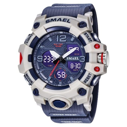 Relógio militar masculino SMAEL, esportes ao ar livre, relógio eletrônico, relógio de pulso , alarme, cronômetro, cronômetro, relógio analógico digital, impermeável, azul 8008