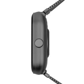 Com caixa quadrada de 47 mm e apenas 35 g, ele é leve e confortável no pulso. Além disso, acompanha duas opções de pulseira uma em aço preto mesh e outra em polímero preto para que você escolha entre um visual sofisticado ou mais esportivo.