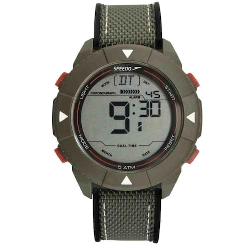 Relógio Speedo Espotivo Verde Masculino 15096G0EVNV2Na Elister, a qualidade é uma prioridade em todos os nossos produtos e serviços. Nós nos esforçamos para oferecer aos nossos clientes uma ampla variedade de acessórios, incluindo relógios e óculos de sol, com as melhores marcas e estilos. Além disso, a nossa equipe é treinada para oferecer um atendimento excepcional, garantindo que cada cliente seja tratado com o respeito e a atenção que merece. ESPECIFICAÇÕES TÉCNICAS - Marca: Speedo- Linha: Espotivo- Referência: 15096G0EVNV2- Gênero: Masculino - Tipo de mostrador: Digital- Função: Calandário, Alarme, Iluminação, Cronógrafo, 12/24h - Tipo de fecho: Fivela- Cor da caixa: Verde- Cor do mostrador: Preto- Cor da pulseira: Verde/Preto- Material da caixa: Poliuretano- Material da pulseira: Nylon/Silicone- Espessura da caixa: 1,1 cm- Resistência à água: 5 ATM 50m - : 12 meses